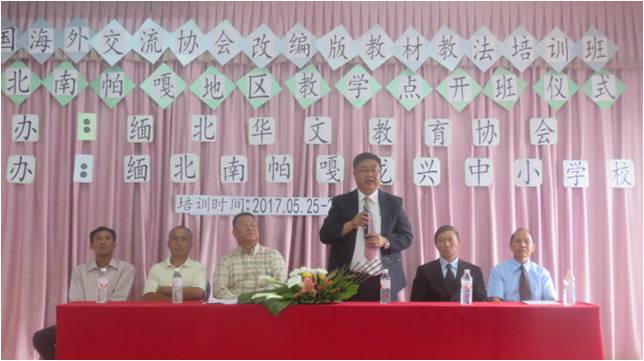 5月25日9时在南怕嘎龙兴中小学校举行开班典礼,南怕嘎校委会副监事长张银根先生在开班典礼致辞中说道:社会、经济的发展需要各种人才,学校便是培养人才的基地。所以我们要重视教育的发展,非常感谢缅北华文教育协会尚兴玺会长等缅北华文教育协会的领导对南怕嘎地区华文教育的关心和重视。现南怕嘎联络中心13所华校的所有教师都已经做好准备,积极参加好这次培训,将培训所学的新知识、新方法应用于教学当中,实实在在的提高南怕嘎地区的教育水平。