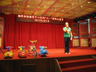 校务委员会主任叶雪金女士讲话          卢晓静老师主持六一儿童节活动