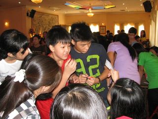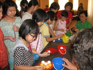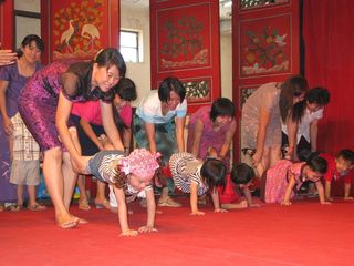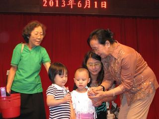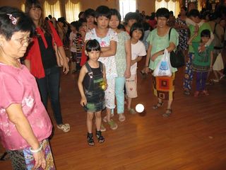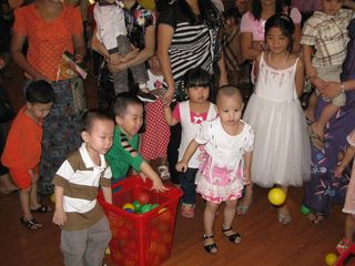 缅华妇协教育中心今天上午在华商商会大礼堂庆祝“六一”国际儿童节。还未到九点钟,小朋友们在家长陪同下,已兴高采烈地来到大会堂。大厅里弥漫浓浓的节日气氛,小朋友们你追我赶,欢笑声此起彼落,今年的庆祝内容非常丰富,老师们准备了各种游戏项目和奖品。校务委员会主任叶雪金女士致词后,游戏活动就开始了,只见每一个游戏项目前面排着队伍,每个小朋友都显得跃跃欲试,却又遵守游戏规则,按序而上,小小年纪,就已懂得遵守纪律。那边厢,小小班的孩子们在家长陪同下举行竞跑比赛,吱吱的童声伴着天真快乐的笑容,感染了在场每一个人。