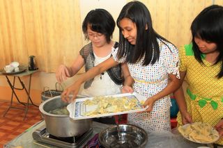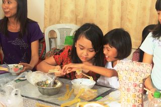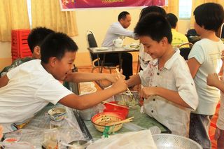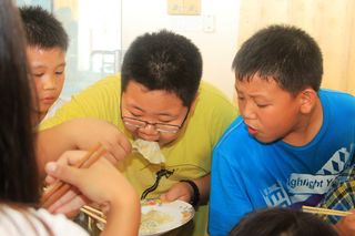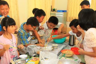 下午4时,于福庆孔子课堂五层楼内还举行了小朋友们的庆祝六一儿童节包饺子比赛。由小朋友们自己动手,老师在旁指导。包饺子共分为四组。他们选择自己所喜爱的口味,在老师的指导下包下了属于自己的饺子。虽然包得不尽完美,但不管怎么说,这是他们亲手自己做的,所以他们总觉得自己包的比别人的好吃。福庆孔子课堂校长李祖清博士表示,结果并不重要,重要的是过程,让他们自己来体验亲手做的乐趣。