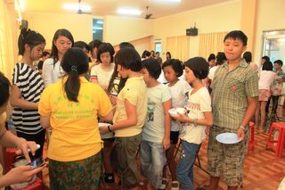 领取节日礼品                        汉语表演缅甸话剧:穆赫德达