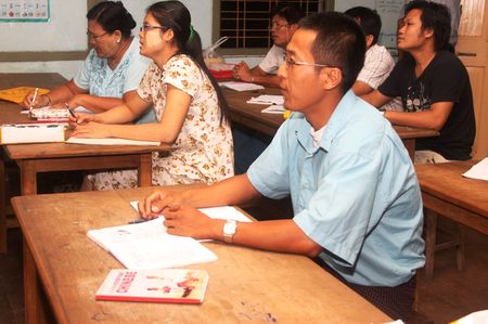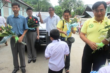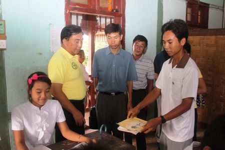 前日,考察团莅临八莫佛经学校,并且与八莫佛经学校董事会、七英里学校董事会、云南、福建、广东三个同乡会董事长及杰沙汉语教学点董事会举行了座谈。座谈会上杜领事说八莫地区的汉语教学在福庆孔子课堂的帮助下发展很快,总领事馆将继续支持八莫的汉语教学。何林教授希望透过华人华侨让缅甸更多民族,比如:克钦族,更加了解中华文化以及语言的魅力,何教授表示这也是国家汉办所希望的,他希望华人华侨参与这一项汉语推广工作。