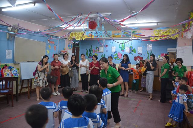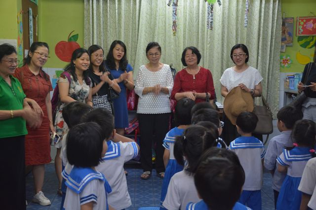 这一天,整个校园早早就做好了迎接各位老师的到来。交流团不顾时间和塞车的匆匆赶来我校。缅华妇协教育中心的校委们和幼儿们热情地迎接各位老师的到来。交流团首先参观了本校的环境及三个班级。纷纷称赞本校丰富多彩的墙面环境。接着可爱的幼儿班宝贝们为客人老师唱了中、英、缅的儿歌,交流团的各位老师也很高兴亲切的对待孩子们,跟孩子们一起唱一起拍手。