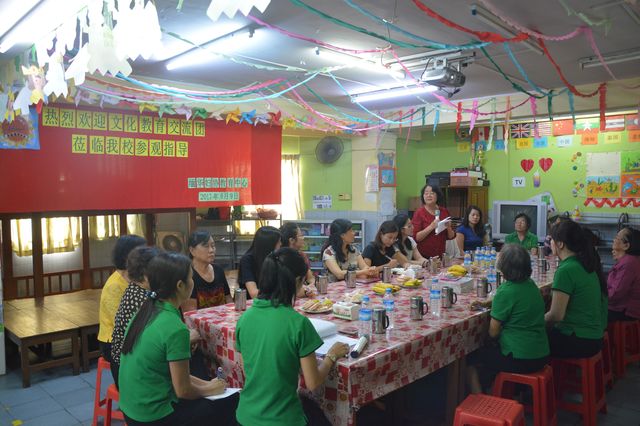 接着,由湖北省海外文化交流协会的杨薇薇科长为大家致词,她表示到了缅华妇协教育中心,所看到的一切都非常丰富,在教学、幼儿、家长沟通各方面工作也做得很到位。杨科长还介绍了湖北的教育情况和丰富的合作交流平台。还非常诚意的提出很想跟本校合作的想法,为学校的发展开拓了一个新的窗口,也为今后学校老师和学生们提供了很多学习、交流的机会。还邀请学校的老师到湖北参观学习,希望以后的联系更加紧密。座谈中,外派教师介绍了学校的基本情况和教学方面的情况。随后,大家相互做了一些有关教学、师资、教室的利用、教材、家长工作等方面的相互交流。