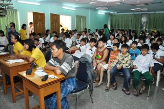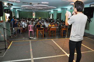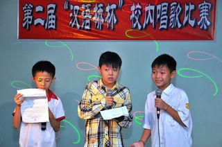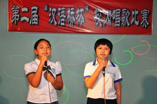 2013年8月17日,上午六时三十分,福庆孔子课堂正规班举行了校内唱歌比赛。比赛的歌曲均为流行歌曲,充分体现了正规班同学们的对中文流行歌曲的兴趣。参加比赛的同学们是正在学习汉语的一年级到六年级的学生。他们之中有的虽刚开始学习汉语不久,但对唱汉语歌曲有着浓厚的兴趣。