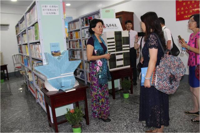 在李岚院长陪同下,毕娇娇副主席一行参观了学院的图书室。李院长对图书的管理和使用情况做了详细介绍。李院长说,图书室建立了规范的管理制度,主要由学生会负责管理。为了提高图书的使用率,对图书的使用做了三点规定:一是由班主任挑选一部分图书至班级建立班级图书角,定期更换,以方便学生随时阅读;二是借阅图书可以以班级或个人的名义,只需按要求做好登记并按时归还;三是开有阅读课的班级由阅读课的老师组织学生到图书室阅读或将图书借到班级阅读。学生都很喜欢看书,令人欣慰。毕副主席了解了“昆明书屋”的图书使用情况后非常高兴,她说,我们捐赠的图书就是希望孩子们喜欢读,孩子们读了,图书才能发挥作用,我们的捐赠才有意义。随后,毕副主席向学院授予了“昆明书屋”的牌匾及印章。