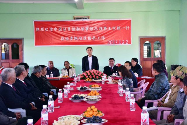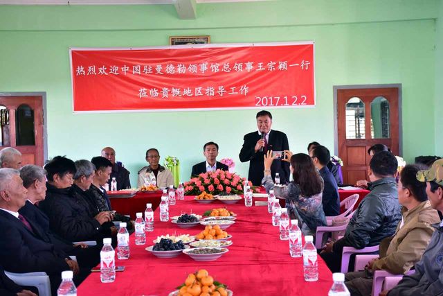 岁末将至,天气微寒。12月2日,在缅北贵概汉族文化会会长、缅北华文教育协会副会长李华山的精心组织和诚挚邀请下,贵概12所华校董事长和校长、果敢文化会刘子兰顾问、白玛会民族文化会杨世华副会长及贵概华侨佛经学校许缅华董事长,校长刘定春及妇女会成员及其他侨领和教师共计八十多人齐聚贵概汉族会馆,受到中国驻曼德勒王宗颖总领事、领事刘欣、副领事苏丽格一行三人的亲切看望和慰问。
