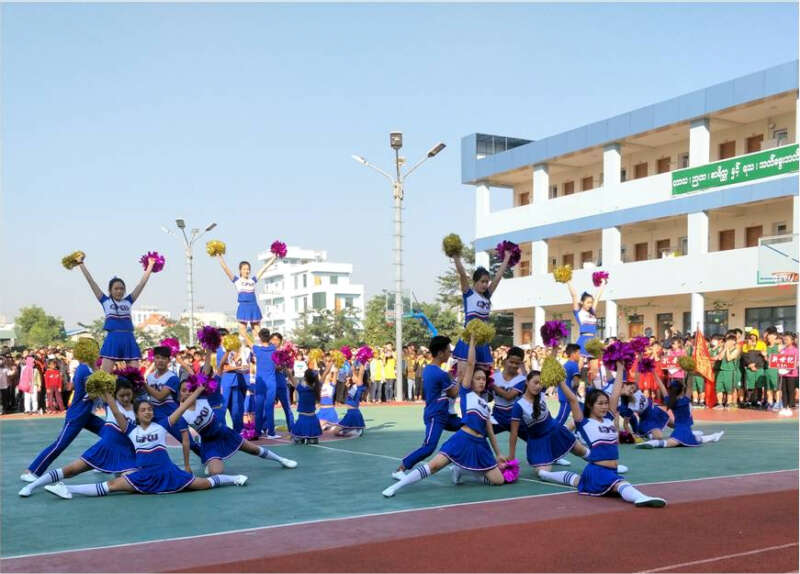 之后的文艺表演为来宾呈现了极富有缅中特色的视觉盛宴:缅甸藤球操展现了藤球的多样性与运动美,缅甸传统舞蹈展现出柔美的舞姿,中国太极拳让我们感受到春雨润物的悄无声息和金戈铁马彩旗招展的阴阳相济之美,青春洋溢、热情四射的啦啦操带来的是一份律动的活力之美,点燃了运动的激情。