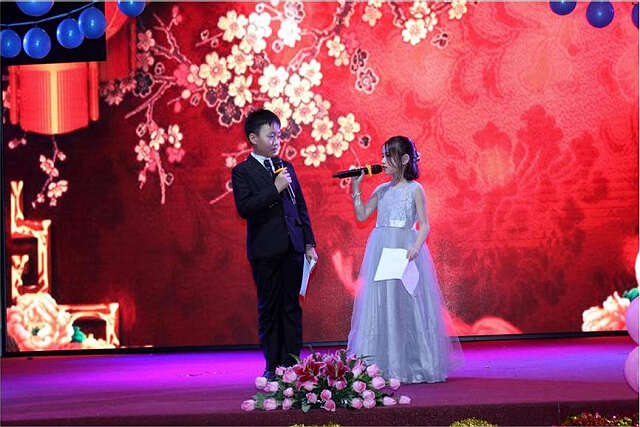 晚会在“新年快乐”的音乐礼炮声中开场。学院常务副院长杨周介绍了莅临本次晚会的嘉宾,云华师范学院副董事长钟顺昌、赵德钧、明振珠,秘书长杨光鸿,执行董事寸守康、陶继锐、杨建新、廖芬昌、蒋庆民、尹可俊、钏嘉硕。赵德钧副董事长在晚会上致辞。他说:大家要以快乐的心情迎接2018年,在新的一年里,希望同学们把书读好,不辜负老师们的辛勤教导,要懂得回报家长的养育之恩;老师们要教好学生,传承云华的良好口碑,使云华的未来更加灿烂辉煌。杨周副院长在讲话中肯定了同学们在过去一年所取得的成绩,对老师们的辛勤付出及董事会与家长的支持表达了诚挚的感谢,并致以新年的问候和美好祝福。