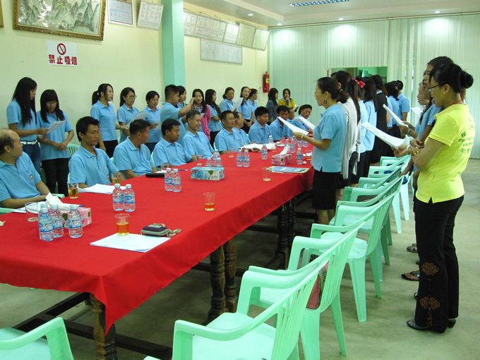 10月7日,在大其力大华佛经学校大礼堂会议室举行结业典礼。校长廖忠铭先生致感谢词,他高度评价了这次意义非凡的教师培训。大会按顺序举行孔子课堂代表林仙珍主任发培训感言并宣读曼德勒福庆孔子课堂校长李祖清博士发邮件给大华佛经学校全体学员告知《海外华文教育的可持续性发展——学历教育及融入主流的重要性》会议小论文。之后唐主任讲话、学员代表感言及颁发结业证书及初中汉语教材相关内容汇报演出。安建民老师朗诵《乡愁》、张自泰老师的培训心得《自创七言诗》、男老师合唱《中国心》,最后女教师合唱《相逢是首歌》表演歌声当中紧张而又令人愉悦的“2013年度大其力地区本土教师汉语国际化教材培训”徐徐落下了帷幕。