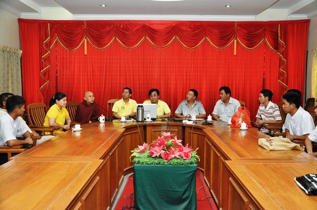 李祖清校长介绍,福庆学校是一所把“汉语”当做国际语言来进行推广的教学机构,有许多教师就是本地的缅甸人。福庆学校还举办缅语班,其中就有广西、云南等中国留学生到福庆学校学习缅语。李校长还告诉学员们,不仅要学好缅语,同时还要深入了解缅甸的文化传统。随后果敢自治区的乐世华校长对学生们训话。他训导学员们必须遵守纪律,努力学习,为果敢地区和人民做贡献。果敢联谊会副会长刘德强向福庆学校表示感谢,并嘱咐学员们好好学习,学出好成绩。
