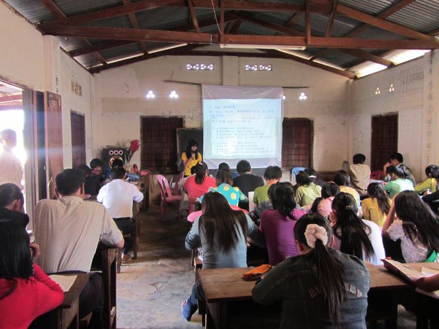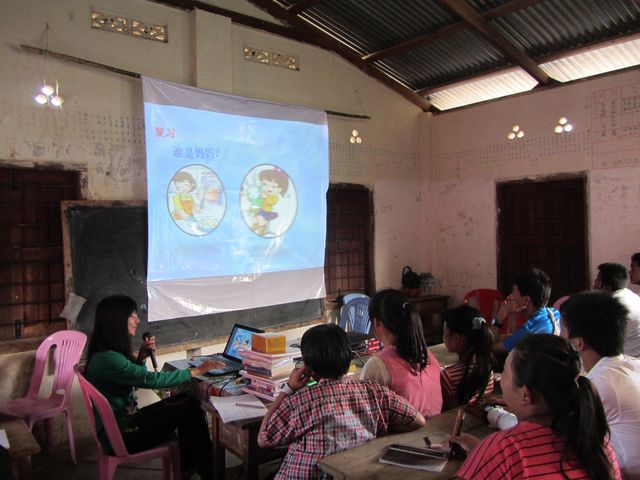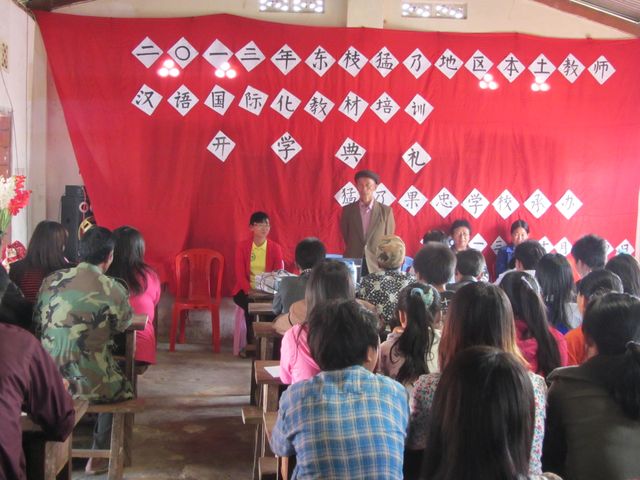 2013年10月份在东枝猛乃地区举行本土教师汉语国际化教材培训。10月14日-17日,曼德勒福庆孔子课堂派两位老师前往南部掸邦猛乃果忠学校举行教材培训。猛乃果忠学校、东山学校的20多位教师及初中班、小学毕业班学员共61人参加培训。3天的时间20学时的课程,专门准备了丰富多彩的现代化课程:现代汉语语法、新HSK讲解、初中汉语多媒体资源包介绍、汉语多媒体教学课件设计等。17日举行了结业典礼。值得一提的是果忠学校王建义校长也参加了20学时课程的培训活动,最终结业典礼上也获得了结业证书。全体学员又激动、既欣慰地“享用”了他们人生首次接受培训带来的国际化、现代化、本土化汉语教学的“滋味”。学校董事长、校长及学校领导一致声称,他们意识到以后的教育工作如何去发展,希望这次的培训给下一代青年人搭上更高的教学阶梯,感谢祖籍国及孔子课堂领导安排新颖教学模式的培训,对以后的教育工作更有信心、更有把握。