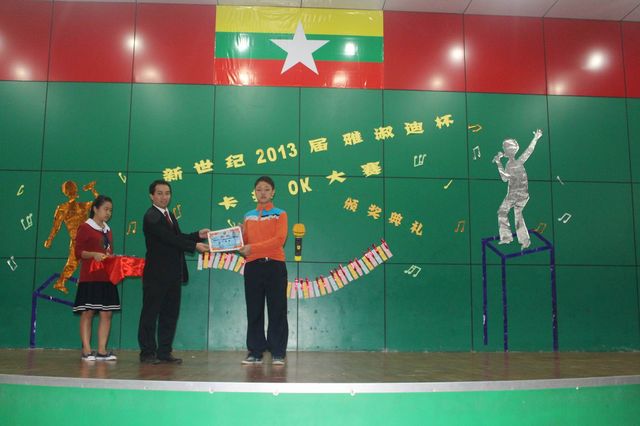 据缅甸曼德勒新世纪国际学校消息,日前,曼德勒新世纪(CPEC)国际高级学校举办了2013届“雅淑迪杯”卡拉OK大赛,并于28日举行了颁奖典礼。