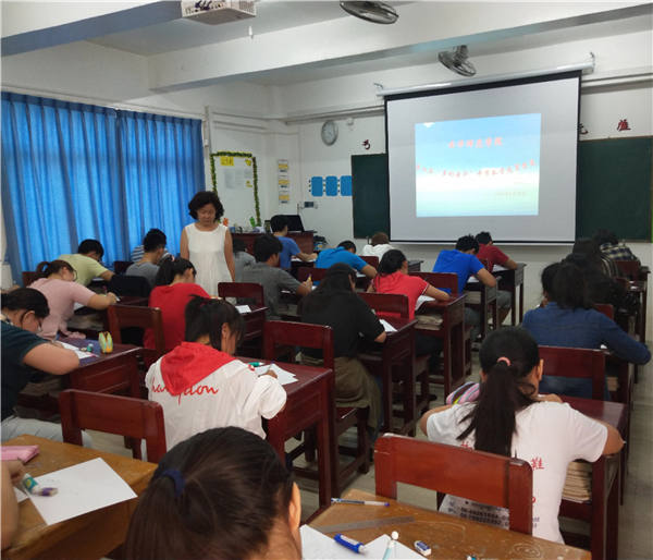 在决赛过程中老师们努力为参赛同学营造一个安静舒适的答题环境,参赛的同学也在认真细致的解答每一道题目。李岚院长轻轻的走进决赛现场关注学生的答题情况,并在考场外就速算竞赛活动小声的对附中校长提出指导性建议。整个决赛从七年级到高一,每个年级设一等奖1名,二等奖2名,三等奖2名。七、八、九年级各设一名团体奖。