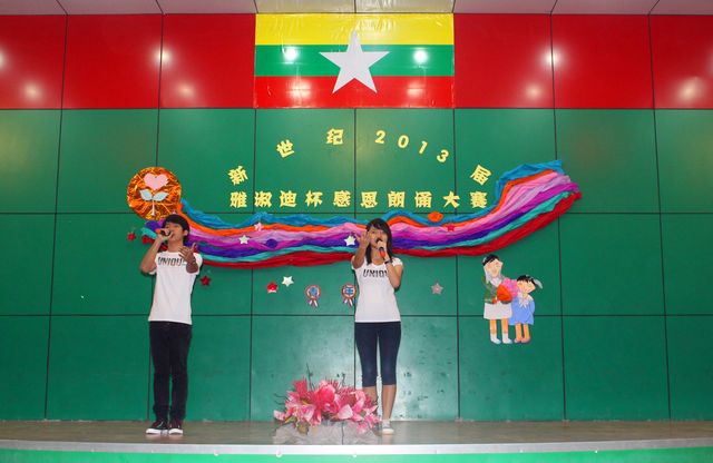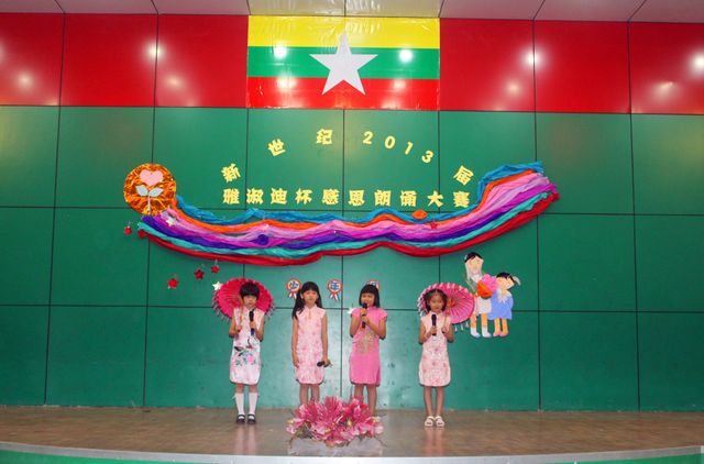 11月25、26日,缅甸曼德勒新世纪学校举行2013届“雅淑迪”杯感恩中文诗歌朗诵大赛,一千多名师生及家长观看了此次诗歌朗诵比赛。