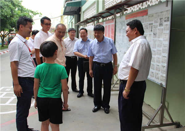 考察访问中,周泽扬校长还特别关心新世纪教师的工作和生活情况,他对新世纪实施的“安居乐教”工程,对重师毕业生能来到缅甸新世纪支持缅甸华文教育,表示十分赞赏。他表示,愿意与新世纪国际教育一道,为“传播中华文化,增进中缅友好,服务缅华社会”开展积极务实的合作。周校长还与来自重师的部分教师进行了亲切交谈合影留念。