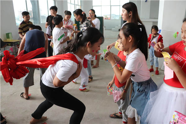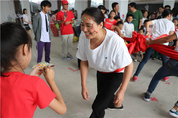 精彩的节目表演结束后,“亲子游园活动”开始。孩子们和自己的爸爸妈妈一道,兴高采烈地参加了各种各样的亲子游戏——袋鼠跳跳跳、两人三足、贴鼻子、灌篮高手,还有家长、孩子、老师的拔河赛……此起彼伏的掌声、笑声、欢呼声、呐喊声,充满了整个校园,孩子们与自己的爸爸妈妈沉浸在无比快乐游戏之中。
