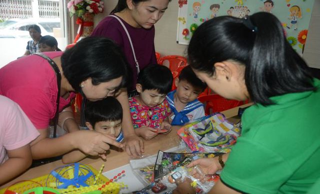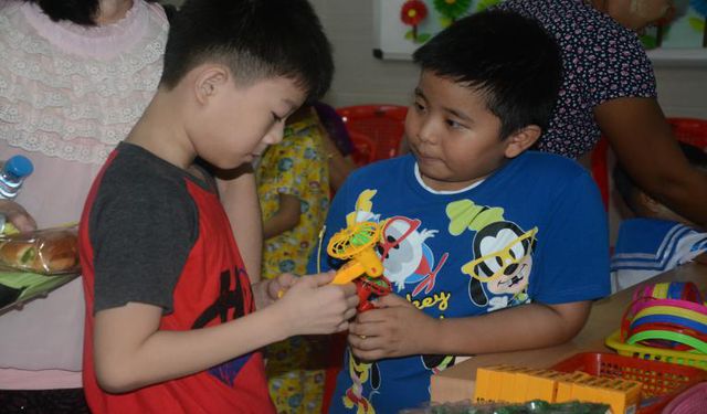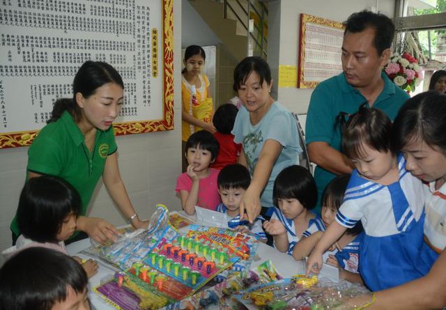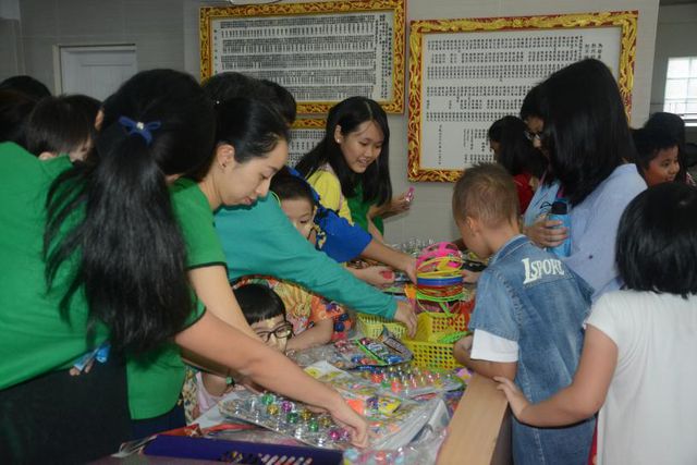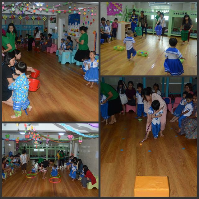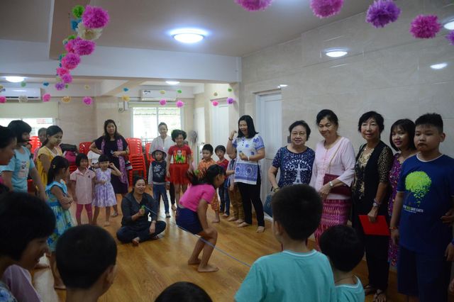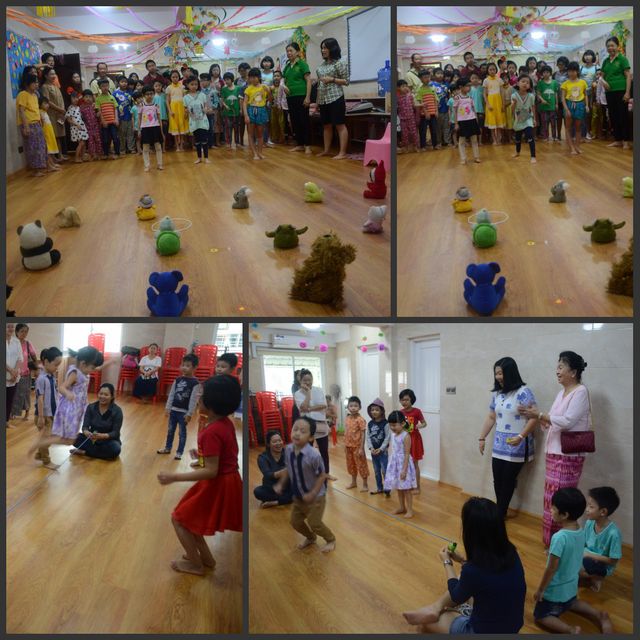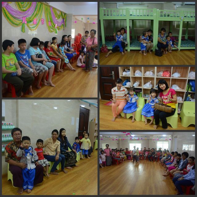 此次儿童节活动周末班和幼儿班共同在新校舍展开举行。还未到八点钟,小朋友们在家长陪同下,已兴高采烈地来到12条新校舍。周末班的孩子们陆续到达学校来参加期待已久的“六一”儿童节。整栋楼弥漫浓浓的节日气氛,小朋友们你追我赶,欢笑声此起彼落,今年的庆祝内容非常丰富,老师们准备了各种游戏项目和奖品。早在5月31号之前,缅华妇协教育中心就开始以班级为单位布置富有欢庆气氛的教室环境,并由学校准备好活动奖品、礼品及活动当天的餐饮。