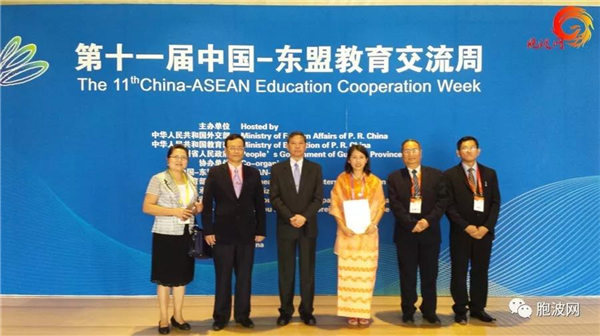 开幕式上,中国国家教育部副部长田学军与泰国教育部副部长索蓬·纳帕通共同向我校留学生苗敏及其他五名获得本年度“优秀来华留学生奖学金”的东盟国家留学生代表颁发获奖证书。活动期间,苗敏还与缅甸教育部部长苗登基进行了深入交流并合影留念。