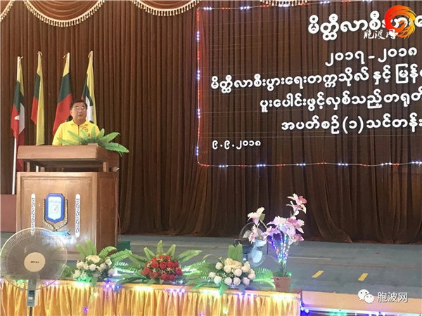 吴博敏会长讲话时介绍了曼德勒省缅中友协为推广汉语国际所做的努力。他说,中央友协都夸赞曼德勒友协在汉语国际推广方面所获得的成就。这主要是有福庆孔子课堂汉语本土教师们的鼎力配合,才能够在20余家寺庙学校、10余家大学院校开办汉语班,而且成绩显著。他告诉大家,学习汉语的大学生都获得了意想不到的成就。他顺势“批判”了某些“杂音”,他说如今中国在世界上成为第二大经济体,全世界都在跟中国来往,又是我们的邻国,十分愿意帮助我们,与我们共享发展的经验,我们再不抓住这个机会,就是我们的“愚蠢”!他最后兴奋地告诉大家,缅中友协与云南大学以及福庆孔子课堂共同建立的“缅中友好职业技术学院”近日已经获得曼德勒省政府的正式批文批准!“职教院”将成为为缅甸培养人力资源的重要基地!造福缅甸社会,为缅甸的经济繁荣贡献力量。