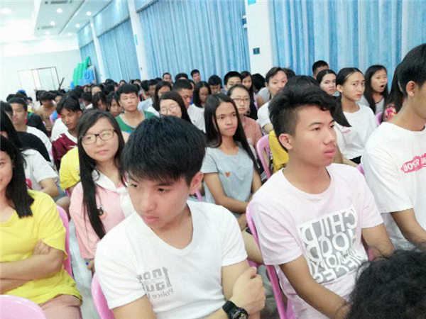 李暾院长对师范生做了动员讲话。他谈到了师范生所学专业的基本情况和未来的就业前景,并说云华师范学院的学生是幸运的,因为云华师范学院是一所公学华文师范学院,功能分化合理,有完整的办学理念系统。学院教师大部分都是祖籍国派来的优秀教师,重点培养本土教师。学院对贫困师范生实行“三不,两包”制度,即不交学费,不交住宿费,不交伙食费,包推荐工作,包高薪。随后,他又说,云华的师范生也是幸福的,要做到“自信、自律、自强”,努力成为一个品学兼优的人。