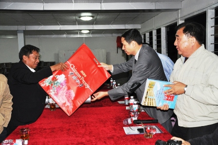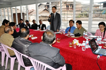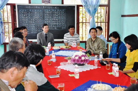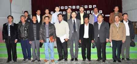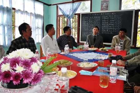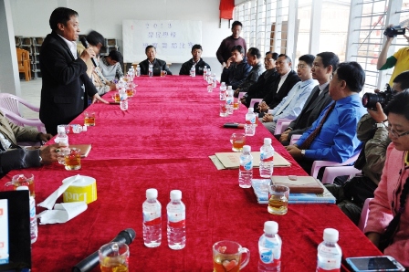 18日下午5:30时,考察团抵达北掸邦重镇腊戌市,以腊戌果文文教会为首的华校校领导接待了考察团,并于果民学校会议室举行座谈。座谈会邀请了腊戌果文、圣光、黑猛龙、果民、果庆等15所华校领导。座谈会主要介绍了留学中国奖学金并推广了汉语考试HSK。各校领导也就其关心的事宜进行了交流。