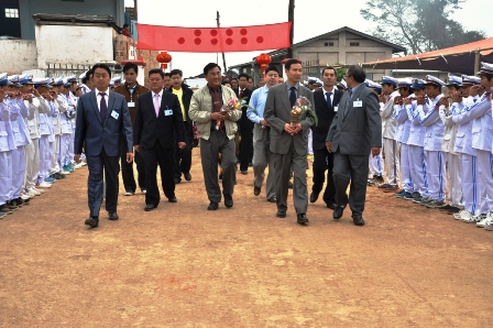 19日上午,中国驻曼德勒总领事馆吴毅领事为首的考察团抵达曼沾勐稳学校并参加曼沾勐稳学校的首班高中毕业典礼。中国驻曼德勒总领事馆吴毅领事、雷洋领事、曼德勒孔子课堂中方主任何林教授、福庆学校校长李祖清博士以及曼德勒云南同乡会、曼德勒孔教学校代表,腊戌果文文教会代表,当地政府机构代表,中石油管道当地代表,三区域地区的教学机构领导代表,当地的妇女会、勐稳公会等机构代表,教师、家长、学生共有400余人参加了毕业典礼。