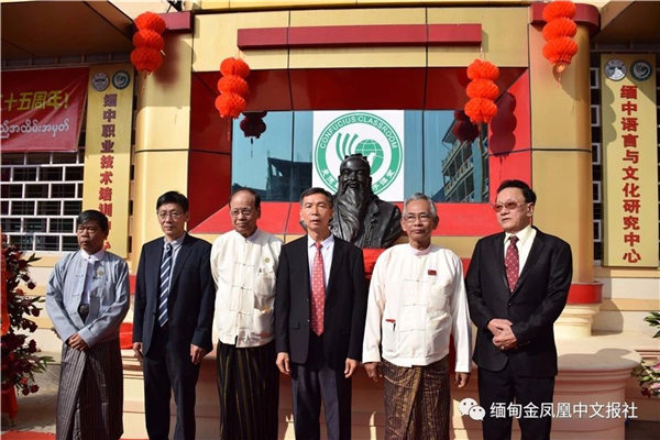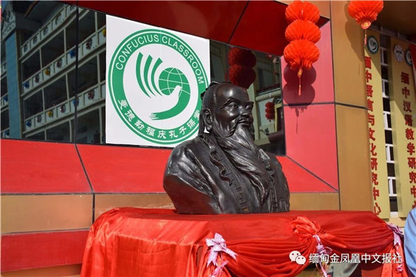 掌声响起,由云南大学向福庆孔子课堂赠送的贺礼——“孔子半身塑像”揭幕,回首往事,2008年在缅甸福庆学校与中国云南大学共同努力下获得中国国家汉办批准挂牌成立,缅甸首家孔子课堂正式成立。十年来,走过了一段艰难创业发展、谋生变革创新的历程。