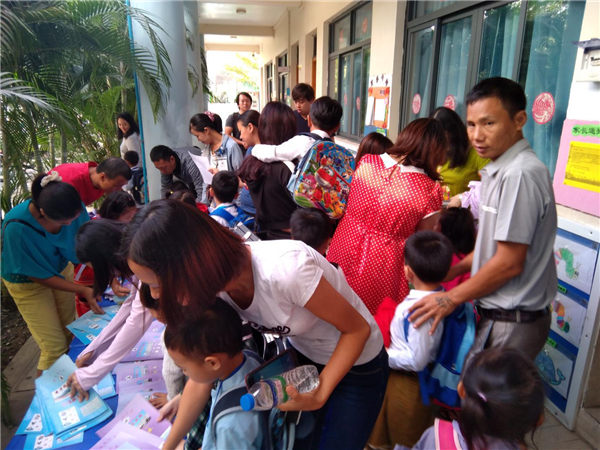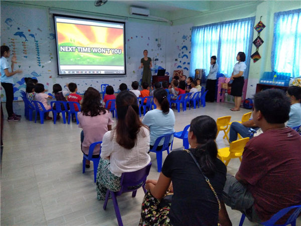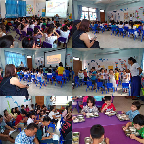 全日制班则以早操律动、“三语”教学活动展示为主,向家长展示了幼儿在园的半日学习、生活状况。“三语”展示活动在半日活动的设计和安排中,尽量考虑到生活环节的合理化,考虑孩子的年龄特点和活动兴趣所在,使幼儿学得轻松、玩得愉快。中文、缅文、英文教师的“三语教学”活动准备认真、充分,活动丰富多彩,效果明显,获到家长的阵阵掌声。