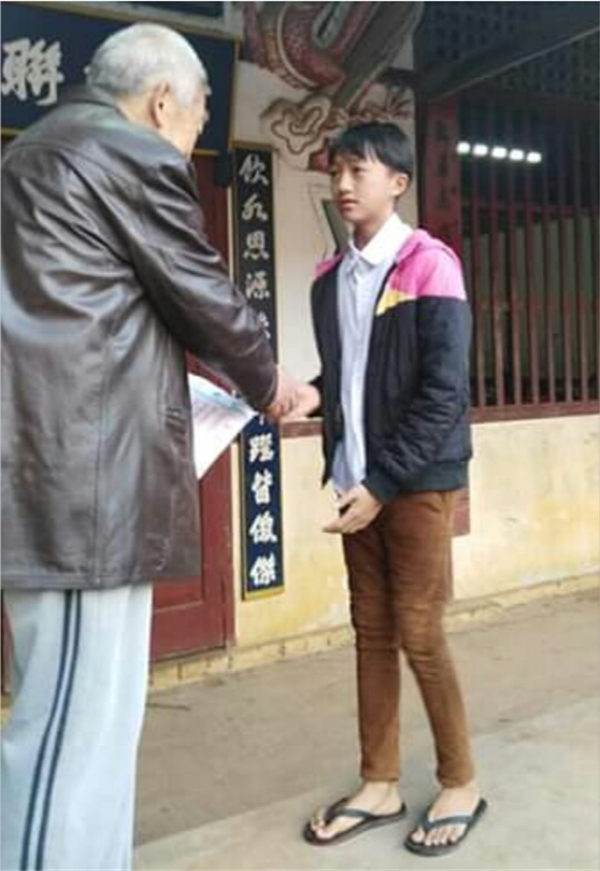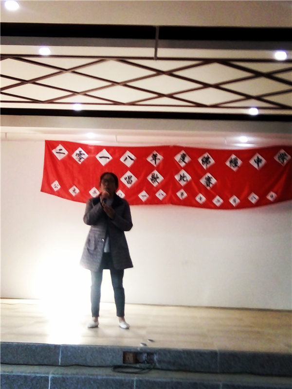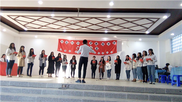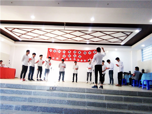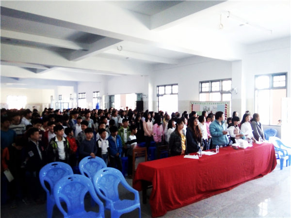 12月17日早上,彬乌伦佛经中学于周会演讲台上,校领导为前期的作文、演讲、歌唱等比赛的优胜者颁发奖状及奖品,并合影留念。