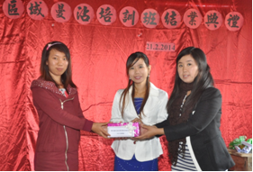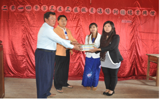 2014年2月21日 (星期五)上午10:00在曼沾勐稳学校举行第三届三区域曼沾教师培训班结业典礼,三区域八所学校的校领导及老师们参加了本次结业典礼。结业典礼开始前,播放培训班上学员们的学习照片,学员们一边观看照片一边回忆这几天的点点滴滴。结业典礼上,本次典礼的主席曼沾勐稳学校廖等昌董事长、杨大昌董事长、顾问廖楼昌先生致词后,南渡华侨学校、南渡勐稳学校、曼东育华学校的各位校长也纷纷致词,感谢福庆孔子课堂为三区域八所学校进行短期培训,让各校的老师们增加了不少专业知识,希望以后的教师培训时间长一点儿。之后曼德勒福庆孔子课堂的杨成金老师和林银珠老师也致词,鼓励学员老师们再接再厉,为缅甸的汉语教学一起努力,培养出更优秀的汉语人才。曼沾勐稳学校的廖俊昌校长和杨国厚校长也纷纷致词,鼓励三区域八所学校的老师和同学们参加5月份的HSK考试。最后,培训班学员代表金明珠老师致词,感谢两位培训老师辛勤地为学员们培训专业知识。最后,两位培训老师给学员们颁发教学展示优秀奖及HSK优秀奖,各位校领导给学员们颁发本次培训的结业证书,给曼沾勐稳学校赠送初中版汉语教材(1-6册)一套。培训班的学员们给两位老师赠送礼物,互相拥抱,在学员们的依依不舍中,圆满结束了本次培训的结业典礼。