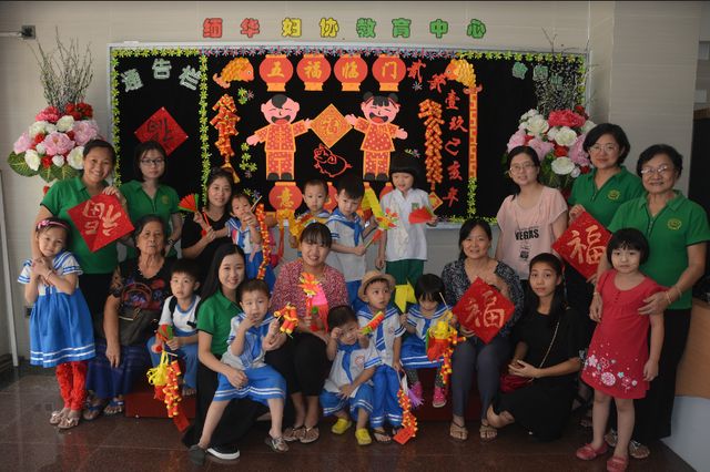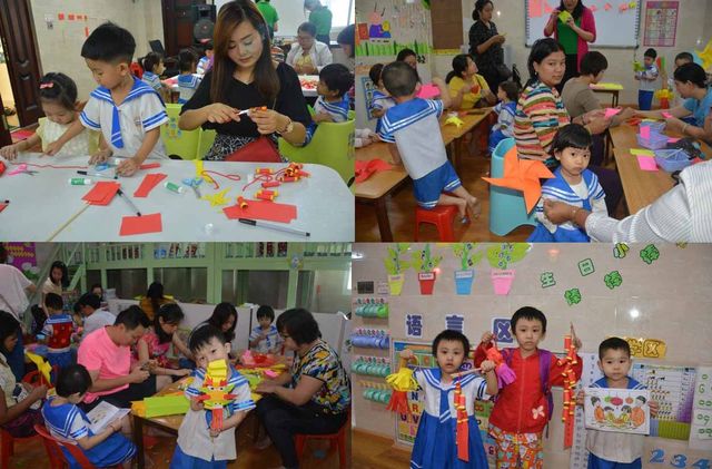 这是缅华妇协教育中心幼儿园开展春节喜乐会活动时的两个场景。春节,是中国最重要的传统节日。为了使幼儿们对春节有进一步的了解,初步感知春节的热闹气氛,缅华妇协幼儿园于1月25日组织开展了2019年春节喜乐会活动。此次活动,虽仍采用亲子手工的模式,但活动内容丰富,形式新颖。学校一共给家长朋友们提供了十个手工学习区:毛线铅笔球、龙、年年有鱼、鞭炮、剪纸、扇子、金鱼、风筝、绘画、舞蹈。活动中,家长们积极参与,根据孩子的兴趣自由选择手工制作学习项目,虚心向老师们请教,和孩子一起动手,相互协作共同完成手工作品,当天参加的每个家庭最少完成了三件作品。活动结束,学校给每个家庭赠送了春节贴的“福”字或“春”字。