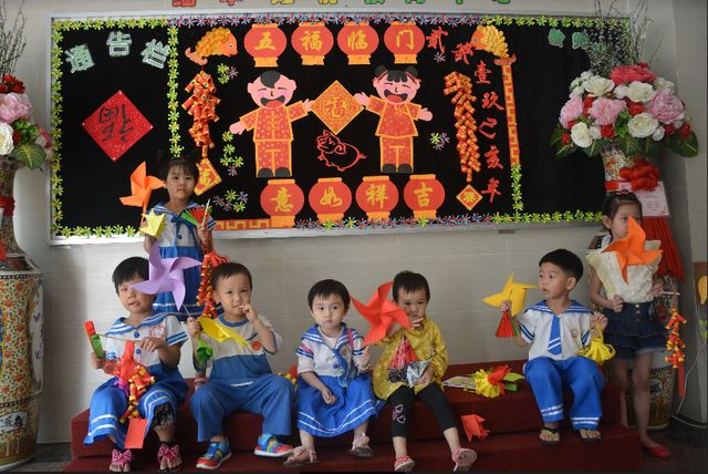 “看这里,smile!”。孩子和家长手中拿着亲手做的“灯笼”、“龙”、“年年有鱼”、“鞭炮”……在老师的指挥下,站在一楼春节壁报前,把那一刻幸福的笑脸永远留了下来。
