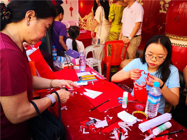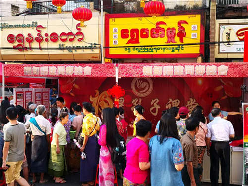 聚焦大年初一,福星龙鼓队以气势恢宏的鼓声吸引了无数目光,洪亮大使和仰光省行政长官吴漂敏灯也前来体验。游人纷纷前来学习中国结、剪纸,竞相踢毽子赢奖品,试穿中国传统服饰,写“福”送平安......琳琅满目的体验项目让人们目不暇接,流连忘返,浓厚的年味与文化氛围更是吸引了无数的人前来参观体验。