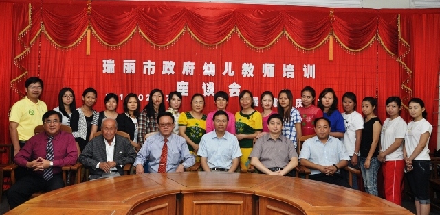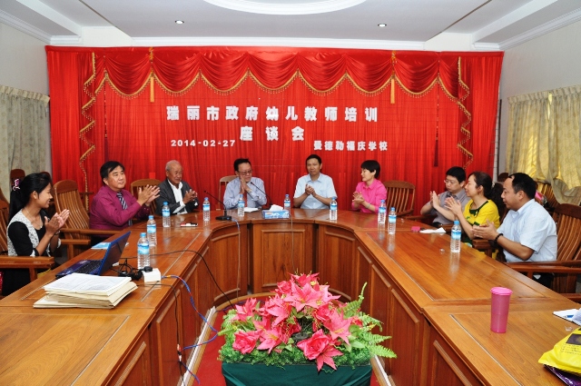 随后,于会议室进行了座谈会。会上黄鹏飞先生表示:福庆学校十分重视幼儿学前教育,福庆拥有两所幼儿园:“喜洋洋”与“福娃娃”,尽管硬件方面已较完善,但有关软件教师的素质方面,仍然有待提高。今天瑞丽侨办这样“送教上门”真是雪中送炭,黄董事长代表董事会对瑞丽市政府、瑞丽侨办侨联表示最高的谢意。