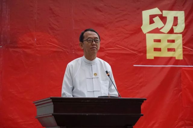缅中友协中央执委吴森纽(U Sein Nyunt)对我院给予缅甸留学生亲人般的照顾表示感谢,也希望缅甸学生遵守校纪校规,能够学有所成,学习中华文化。他表示,这不仅是政府间的合作,更是人民之间的友谊。