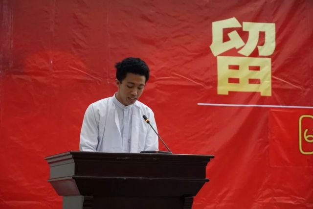 18级缅甸留学生卓鹏则作为留学生代表向学院许诺,他们将会刻苦学习,不仅将学好各自的专业,也会努力学习中国博大精深的文化、语言,严格遵守校纪校规,一定不负国家和学校的厚望!