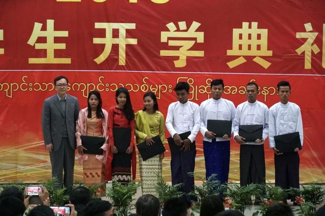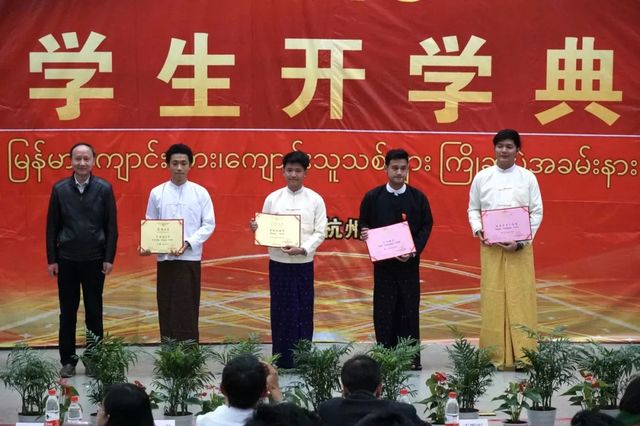 典礼上还由党委委员丁明军为年度优秀留学生颁发了证书奖状,教务处处长杜红文、学生处处长张伟分别为缅甸新生颁发入学资料,鼓励学生奋发进取,在中国学有所成。