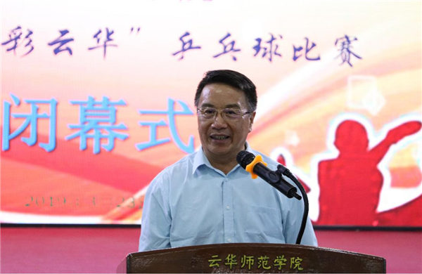 云华师院院长李暾教授也在闭幕式上作了发言:首先祝贺获奖的运动员,你们在比赛中赛出了云华学子的风格和精神。希望你们保持劲头,在下一届邀请赛中一展云华的风采,为学校增光添彩;感谢尚兴玺董事长为首的校董们的鼎力支持,感谢工作组工作人员的辛苦付出,使得本届乒乓球比赛圆满落幕。完整的教育应该包括体育教育、艺术教育。没有体育的教育是不完整的教育。