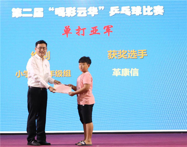 云华师范学院寸守康董事在闭幕式上发表了祝贺词:受尚兴玺董事长委托,我代表云华师范学院董事会全体董事对第二届“喝彩云华”乒乓球比赛圆满结束表示热烈祝贺!同时,对在比赛中取得优异成绩的选手表示祝贺!18世纪法国著名思想家伏尔泰提出“生命在于运动”。“喝彩云华”乒乓球比赛,营造了“运动、健康、快乐、成长”的校园文化氛围。在这样的环境氛围中,运动员们通过切磋球艺,增强了友谊、共同提高了球技,不但缓解了紧张的学习压力,而且陶冶了情操,促进了身心健康。比赛中,裁判公正,让选手心服口服。运动员坚持“友谊第一,比赛第二”的原则,赛出了云华风格、水平和精神,这是此次赛事活动最大的收获。同学们,希望你们胜不骄,败不馁,把比赛中表现出来的切磋琢磨相互学、团结互助敢拼搏的精神带到学习中去,轻松快乐的学习,在比学赶帮中健康成长。