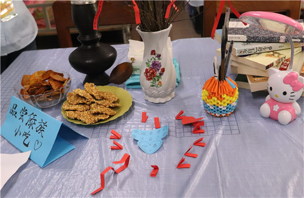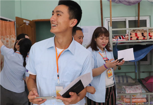 参加评比的宿舍有男生宿舍7间,女生宿舍11间。学生宿舍内务评比打分项主要有:整体环境、卫生情况、床铺整洁度和美化设计等四个方面,分值为60分。学生们对宿舍检查活动高度重视,宿舍都经过学生们的精心布置,各具特点。有的物品摆放整齐划一,有的注重营造宿舍文化氛围,有的布置温馨舒适,还有孩子们用心为老师们准备的缅甸小吃和纸张折叠的小礼物。