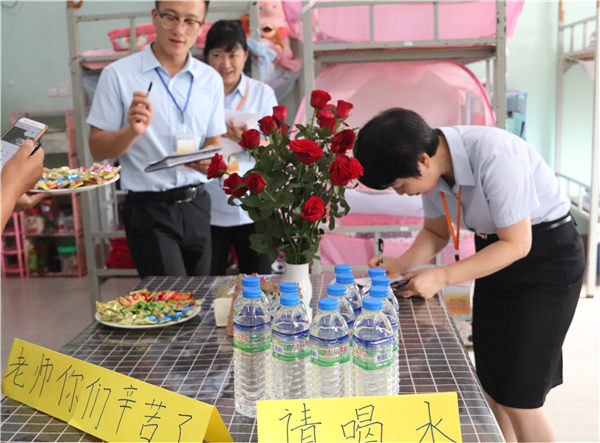 为促进学生宿舍规范化管理,提高学生自我管理能力,美化校园育人环境,2019年3月28日上午,云华师范学院宿管部开展了第四届“光彩云华”学生宿舍内务比赛。云华师范学院甘雪莉副院长、院长助理马从源老师、中学部尚朝能主任、小学部王祥主任及各部门德育助理及班主任代表对18间学生宿舍进行了内务检查评比。