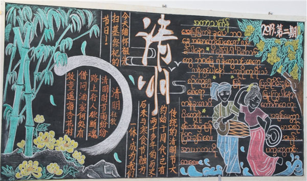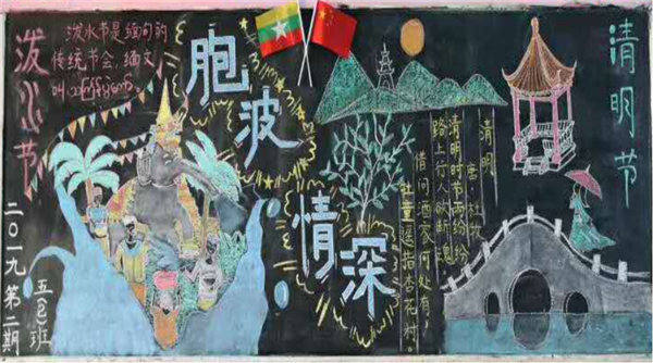 各班展板内容紧扣主题,各具特色。有的班同时用中文、缅文书写内容,特点鲜明。中国传统文化与缅甸人物风景画融为一体,呈现出多姿多彩的画面。