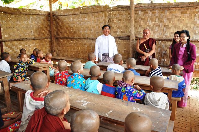 佛教国家的缅甸,寺庙僧侣在缅甸民众心目中,享有崇高的地位与威望。缅甸寺庙功能齐全,其中,学校与孤儿院是缅甸寺庙的重要功能。将寺庙学校作为切入点,努力使汉语教学融入主流,是福庆孔子课堂最新的方向。