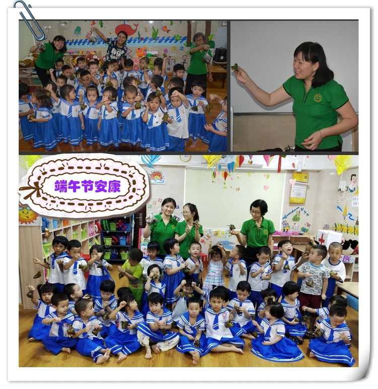 “五月五,端午到,赛龙舟,真热闹。吃粽子,戴香包,蚊虫不来身边闹……”下午两点,稚嫩的歌声从大中小班的教室传出。原来是各班的老师在教孩子们唱端午节的儿歌呢!孩子们跟着老师一句一句地学唱,学得认真,唱得高兴。好听的儿歌学会后,老师们手把手教孩子们包粽子,让他们亲身体验了包粽子的乐趣。放学了,校长和园长给每个孩子送上一个粽子,浓浓的粽香寄托着学校对所有孩子及他们的家人的诚挚祝福!