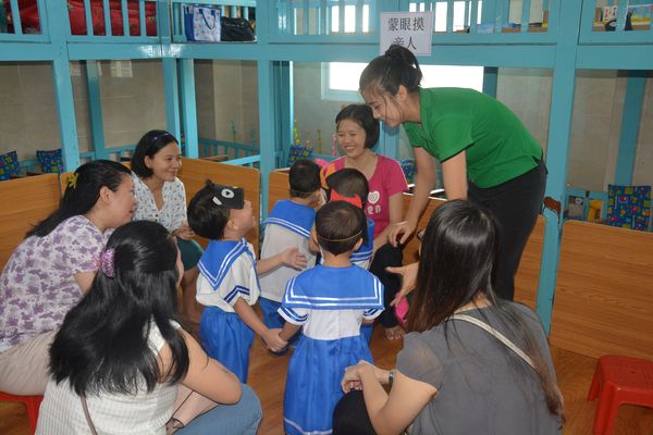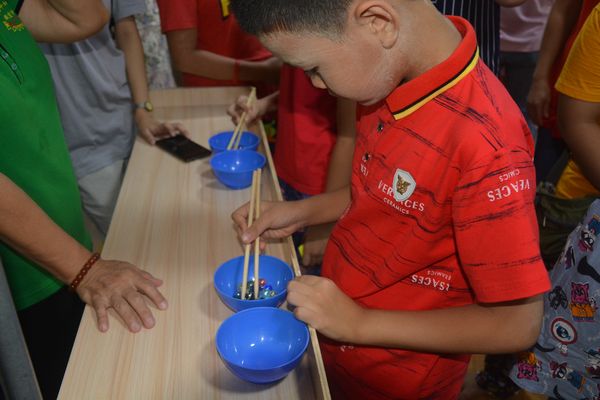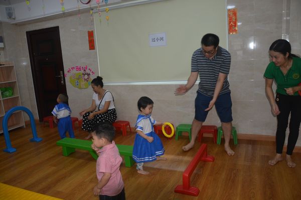 六一,是孩子们的节日,也是他们成长过程中最为珍贵的记忆,因此本次活动力求让每一个孩子都找到自己感兴趣的游戏,让每一个孩子都参与到活动中,学校为此共设计、准备了适合不同年龄段学生参与的六组十七个游戏:“小脚踩大脚”、“过小河”、“蒙眼摸亲人”、“丢球球”、“垒高楼”、“小白兔搬萝卜”、“滚轮子”、“我是小小领路人”、“推小车”、“采蘑菇”“夹弹珠”、“乐翻天”、“心有灵犀”、“套圈”、“七螃蟹夹球”、“猜谜”、“头顶物品”等,这些游戏活动分布在学校教学楼每层的教室里。由于准备充分,游戏内容丰富,学生和家长们参与的积极性很高,虽是酷暑,可每个人似乎都忘记了炎热,玩得满头大汗、不亦乐乎。