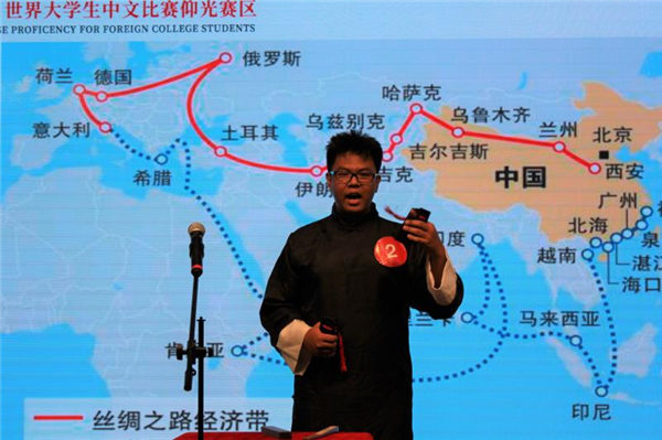 决赛分为个人演讲、影视模仿秀、才艺表演三个环节。在演讲环节,选手们有的讲述学习中文的温暖回忆,分享自己和中国的故事;有的结合自己的访学经历,讲述语言文化交流的意义,还有的将“天下一家”这一中国古典智慧与构建人类命运共同体的当代理念联系起来。他们以流利畅达的汉语表达,从不同视角述说着各自对“天下一家”的理解。