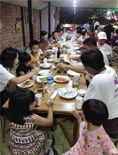 一天的毕业旅行结束了。傍晚,迎着日落,吹着凉风,家长、孩子和老师们乘车到了饭店一起享受了美味的晚餐,大家你一言我一语,分享着温馨的时刻和内心的喜悦。