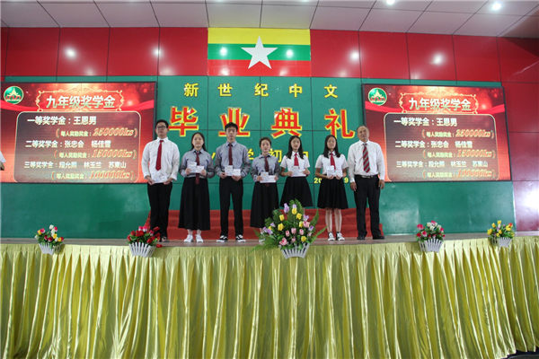 紧接着,校董张仰辉、张旺后先后向荣获毕业奖学金的杨焕可、段雅琪、钟宛静、王恩男、张忠会等12位同学颁发了奖证和25万缅币不等的奖金。