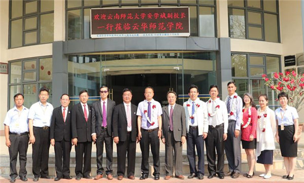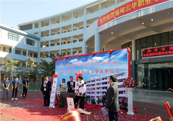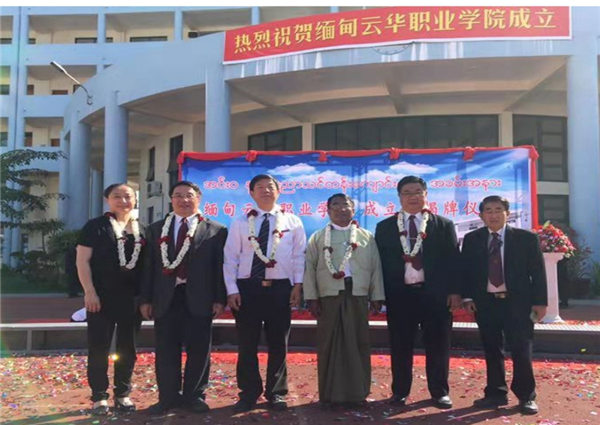 2017年1月9日,贵校党委书记饶卫教授、华文学院和雪莲书记赴缅甸云华师范学院,我们共同举行了"云华职业学院"揭牌仪式,缅甸曼德勒省社会救济与安置部社会福利厅厅长吴觉温先生、中国驻曼德勒总领馆王宗颖总领事等有关官员参加了揭牌仪式,见证了缅中友好合作的难忘时刻。